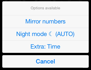 “Mirror numbers” switches back to a HUD mode, you can also just double tap on speed digits to do it. More on a “Night mode” below. “Extra” gives ability to show time or altitude on the full screen.