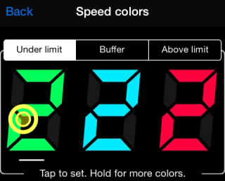 Ability to setup speed digits to any color. Hold finger on adigit in “Advanced settings”>“Speed colors” or"Heads-up and full screen options"