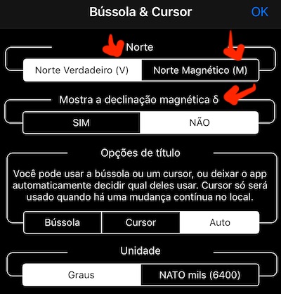 O uso da declinação não requer dados / internet, pois os valores são calculados com base no modelo magnético mundial.