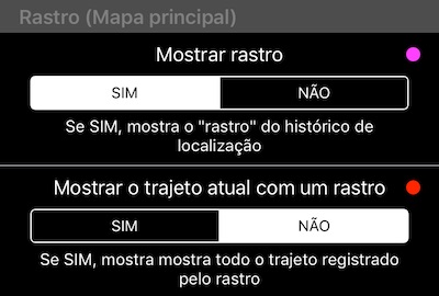 Todo atualmente sendo gravado trajeto pode ser mostrado no mapa principal (Google, Apple, em branco e offline). Como sempre, você pode “fixar” qualquer faixa anteriormente gravada no mapa principal (azul claro), enquanto a faixa atual será mostrada em vermelho e na sua totalidade: