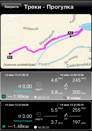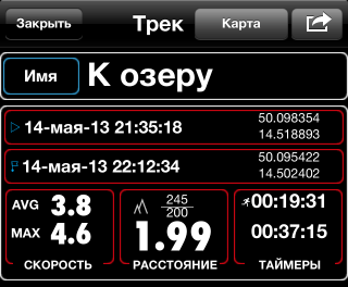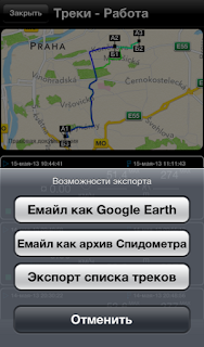 - Возможность поделиться целым маршрутом послав целый архив спидометра по емайлу. Маршрут и с треками можно потом продолжить на другом устройстве.