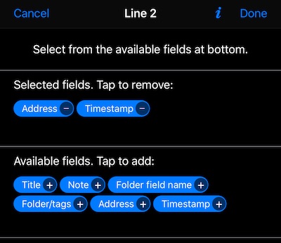 Şimdi seçili alanlar bölümündeki “zaman damgası"ya dokunarak alanı Satır 2’den kaldırın. Tamam ile onaylayın. Notlar örtüsü ayarlarında “Satır 3” satırına dokunun ve alttaki “Mevcut alanlar” bölümünden “Zaman Damgası"nı seçerek Satır 3’e ekleyin. Tamam ile onaylayın ve notlar örtüsü ekranına geri dönün, şöyle görünüyor: