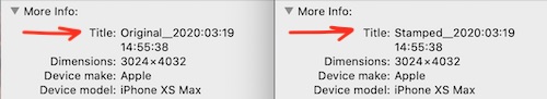 Bu özelliği isteyen Dwayne (Kanada) için teşekkür ederiz. Artık IPTC Nesne Adı, “Orijinal_” veya “Damgalı_” öneki ile birlikte yakalama tarihiyle doldurulur, böylece metadata üzerinden orijinal ve damgalı resimleri kolayca ayırt edebilirsiniz: