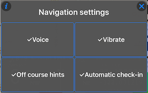 Yoldan çıkma ipuçları - açık olduğunda, uygulama beklenen yoldan sapmaya başladığınızda hedefe olan mesafeyi ve mevcut yönü bildirir, tolerans dahilinde artı/eksi.