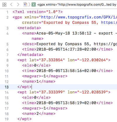 Compass 55. Waypoints GPX içe ve dışa aktarma.