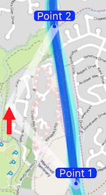 Sonraki parça etiketi ve toplam mesafe etiketi planlanan değerleri gösterecektir. Veya bu “arasında” noktasını haritadaki herhangi bir yere eklemek için, parmağınızı o yerde tutun.