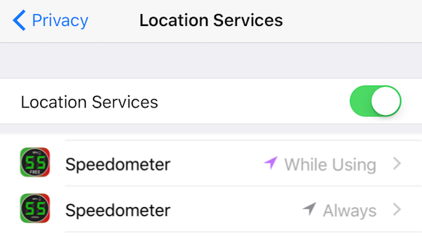 Eğer İzin Ver’e tıkladıysanız, hız ölçeri keşfetmeye devam edebiliriz. Eğer “İzin Vermeyin"e tıkladıysanız, bu ayarlara giderek düzeltilebilir: Ayarlar->Gizlilik->Konum Hizmetleri (iOS6 öncesi: Ayarlar->Konum Hizmetleri):