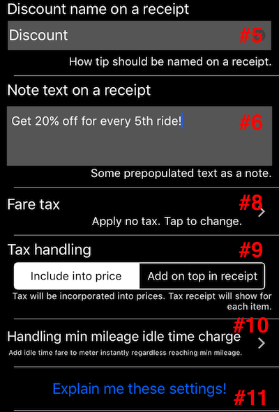 #9 Verginin fatura ve nihai ücretlendirilen fiyata nasıl dahil edileceğini ayarlar. “Fiyata dahil” ise faturadaki tüm fiyatlar satış vergisi dahil olarak kabul edilir. “Faturada üstüne ekle” ise vergi, metrenin üzerinde (+ bahşiş veya - indirim) tutarına eklenir. Bu, ABD ve Kanada’nın metreden sonra “nakit/counter desk” üzerinde vergi eklemeye yönelik gereksinimlerine karşılık gelir.