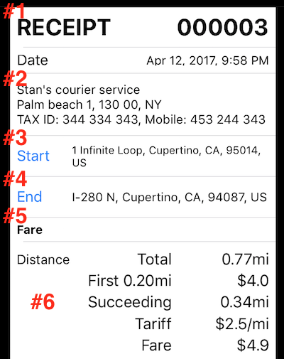 #8 Toplam mesafe ve zaman tarife tutarı.