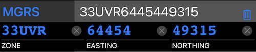 ・Các trường nhập MGRS và UTM hiện hiển thị nút x-clear nhỏ để dễ dàng xóa từng trường tọa độ bằng một lần chạm và bắt đầu chỉnh sửa: