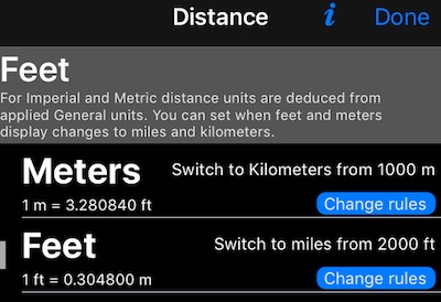 無論上述選擇或限制如何,您都可以選擇在顯示公尺和英尺時切換為公里和英里(或海里)。