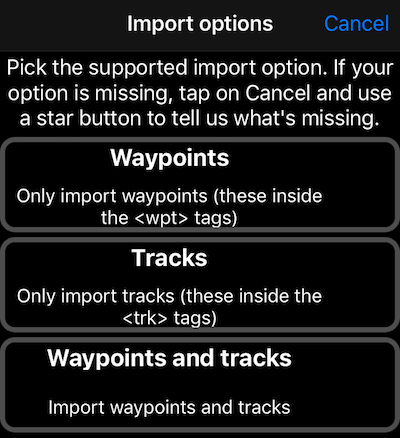 應用程式提供 3 種 GPX 匯入選項: