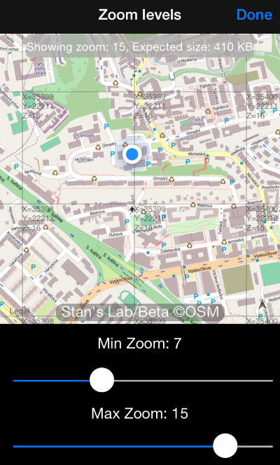 - Stan’s (應用程式作者) Lab/Beta OSM 地圖伺服器 (縮放 0..18)