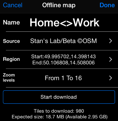 您可以在應用程式中直接下載地圖,方法是選擇地圖提供者和區域,或者使用現有的 MOBAC、TileMill 地圖,或任何其他現有的 mbtiles、sqlitedb、Rmaps 格式地圖。